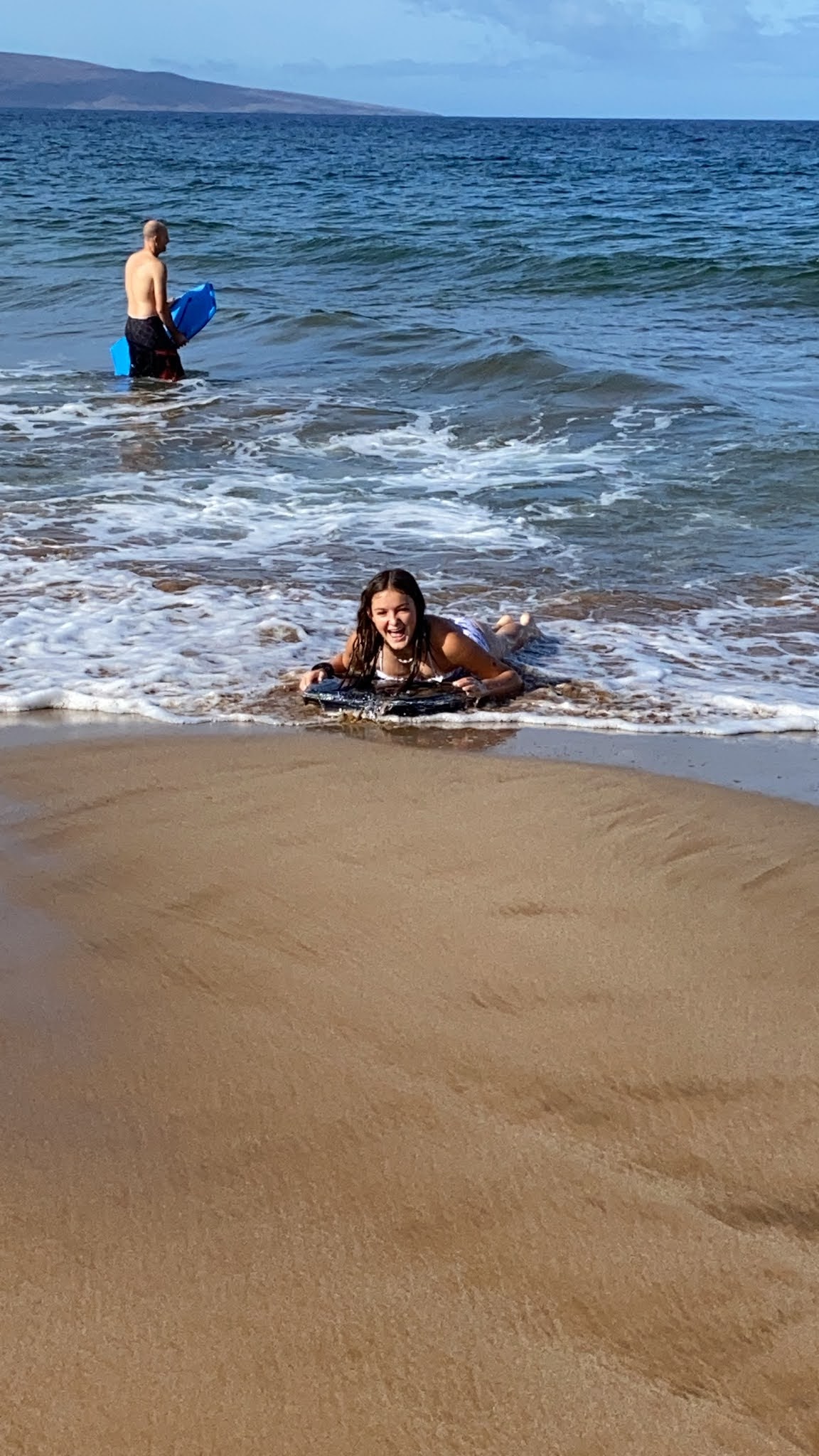 We were still on Utah time so we were up and awake around 6:00. We had nothing else to do so we got to the beach by 8:00. The weather was beautiful, and the waves were perfect for boogie boarding. I could've stayed at this beach all day. It was around 85 that day. We ventured around the beach played in the sand, and boogie boarded in the ocean. Shaylee didn't want to get in tell it warmed up throughout the day, and Landon had a bad wipe out on the boogie board so Shaylee played with Landon on the sand while the rest of us boogie boarded. Addison and Brecken were the first in and the longest ones to stay in and then Dean, myself, and Preston were in and out for most the morning and afternoon. We left around 2:00 to eat some lunch. After lunch we decided to try a hike that was close to where we were staying. It was really pretty lava fields hike, with gorgeous ocean views. We saw baby goats and mama goats along the way. There were a few blow holes we loved to watch a long the way and see if we could get splashed by them. After our hike we went into town and got some Hawaiian Shaved Ice. It was so good after a long day of beaches and hiking. We ended up home for dinner and again, were all in bed by 7:00.